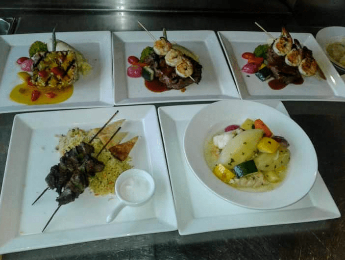 Plate #3) – Lamb Souvlaki, With Cous Cous,Baked Pita Bread & Tzatziki Sauce